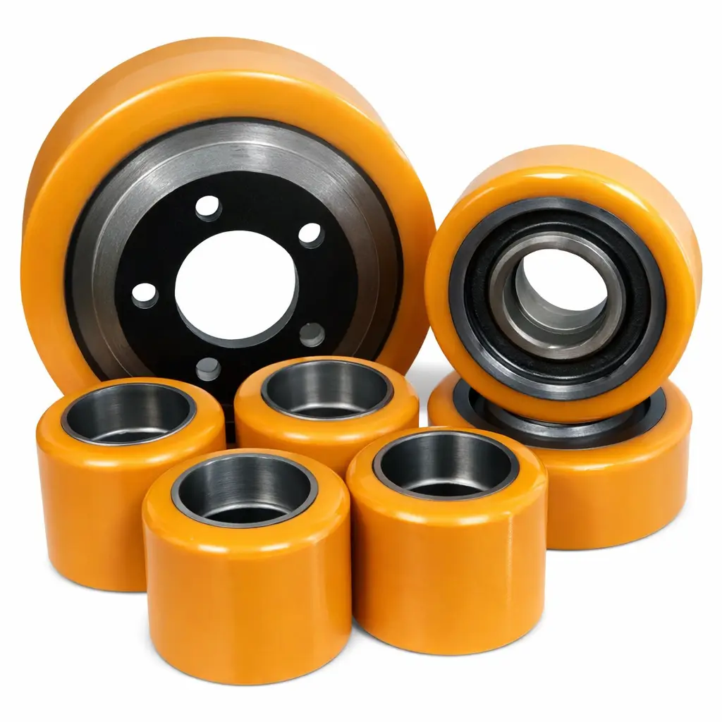 A Crown Parts fornece revestimento em poliuretano para rodas de empilhadeiras, além de rodas em nylon e poliuretano em diversas medidas e pneus maciços sob medida, sempre com orientação para escolher a solução compatível com a aplicação.